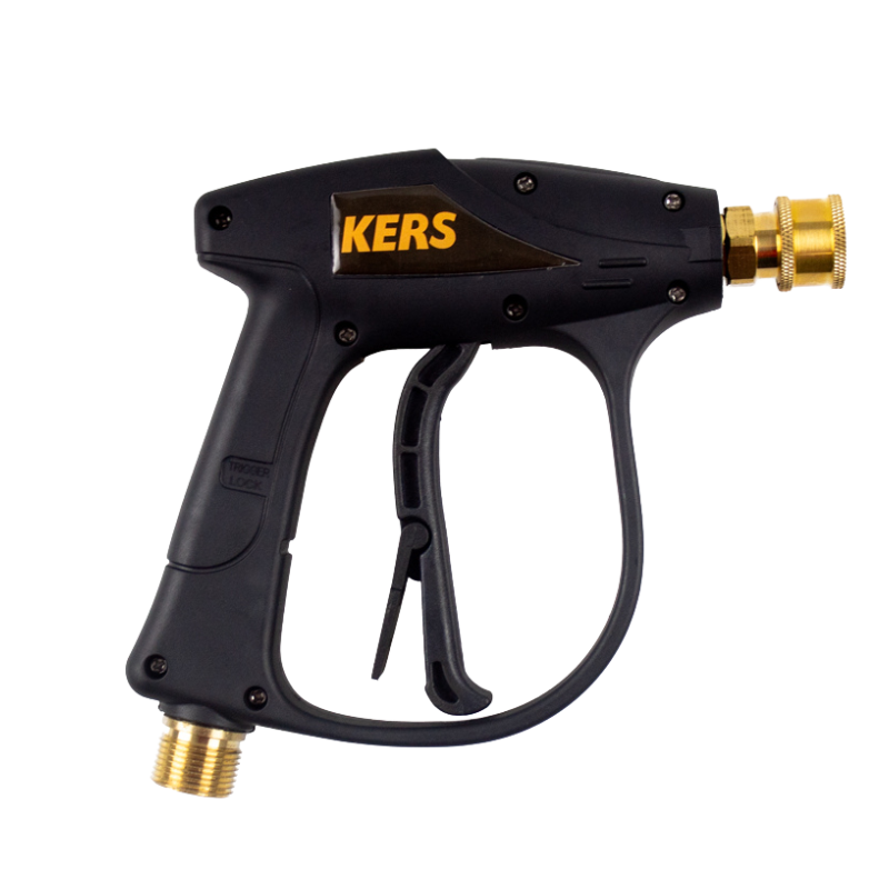 Pistola Water Gun Kers - Pistola para Lavadora de Alta Pressao 5000psi. Pistola de alta pressão projetada para garantir potência e segurança na limpeza com lavadoras de alta pressão. Com uma construção robusta e design prático, é ideal para tarefas que exigem pressão extrema e eficiência. A saída de água do Water Gun Kers adota um conector rápido de 1/4 de polegada, que é conveniente de usar e fácil de conectar com outros acessórios de lavadora de alta pressão, como canhão de espuma, varinhas de extensão, etc.
